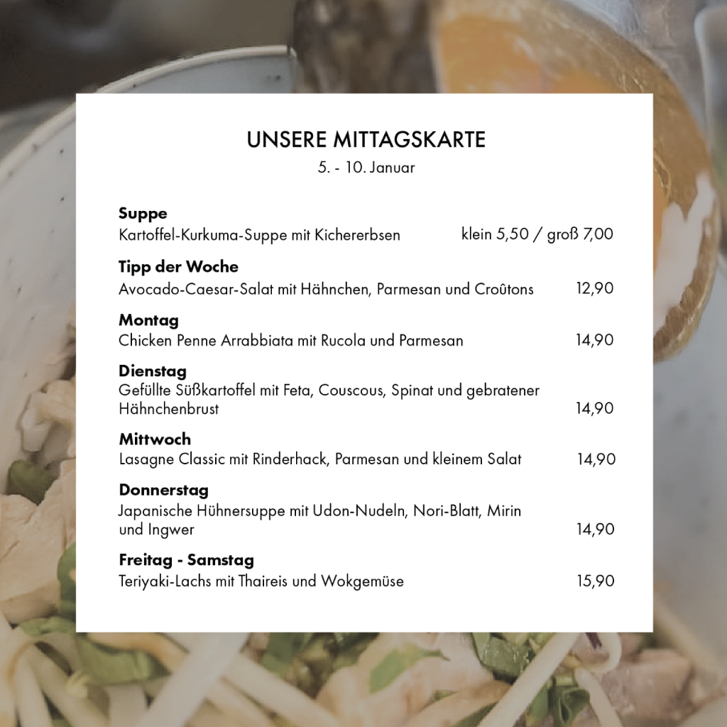 Übrigens: Alle Gerichte können 2 GO mitgenommen werden – 1,50€ Aufpreis (Verpackung)